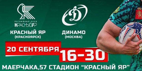 Можно приобрести билеты на матч заключительного 14 тура PARI Чемпионата России по регби «Красный Яр» - «Динамо» Москва. |